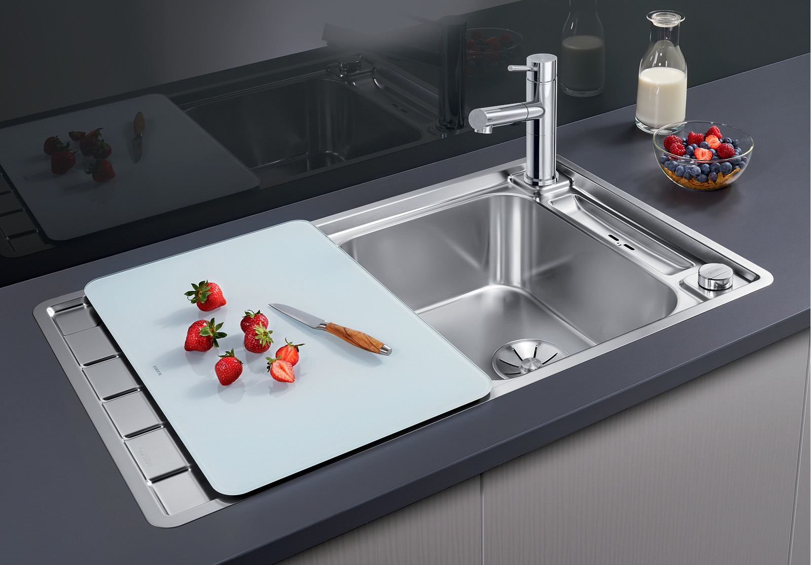 Blanco Axis III 45 S-IF - кухонная мойка с плоским кантом IF для установки в столешницу сверху, либо в один уровень со столешницей. Подойдет для небольших кухонь.