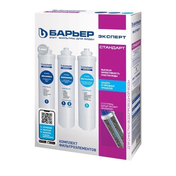Комплект компактных сменных картриджей для фильтров. Применяется в трехступенчатых системах водоочистки «Эксперт Стандарт» для комплексной очистки водопроводной воды от основных содержащихся в ней вредных примесей. Подходит ко всем фильтрам линейки БАРЬЕР Эксперт.