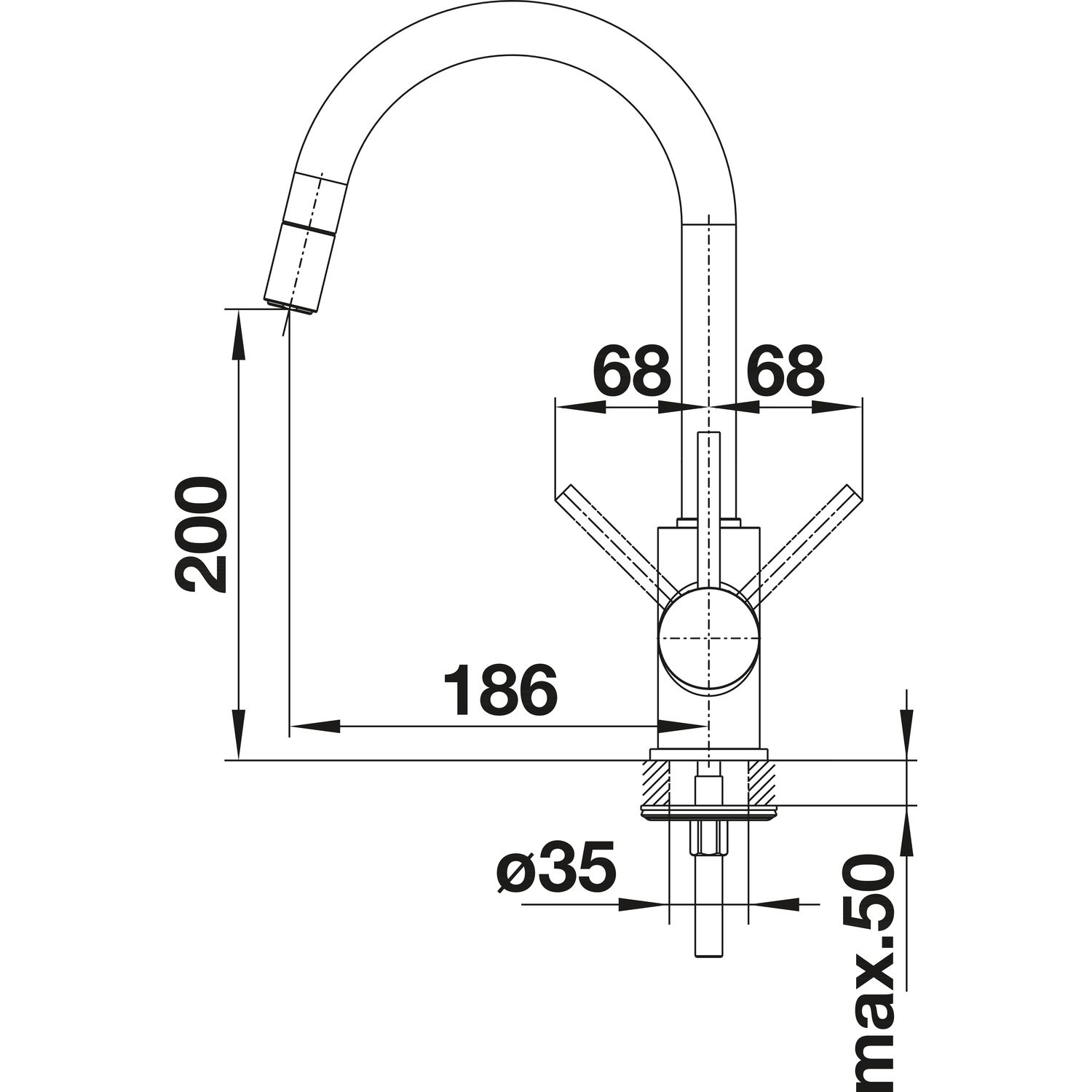 • Требуется отверстие под смеситель Ø 35 мм