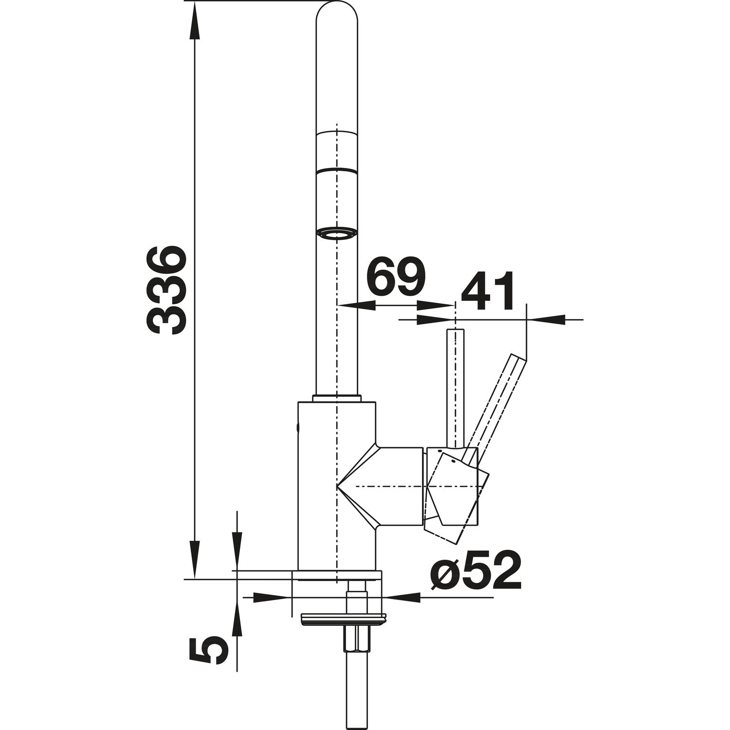 • Увеличенный радиус действия благодаря изливу, вращающемуся на 360°